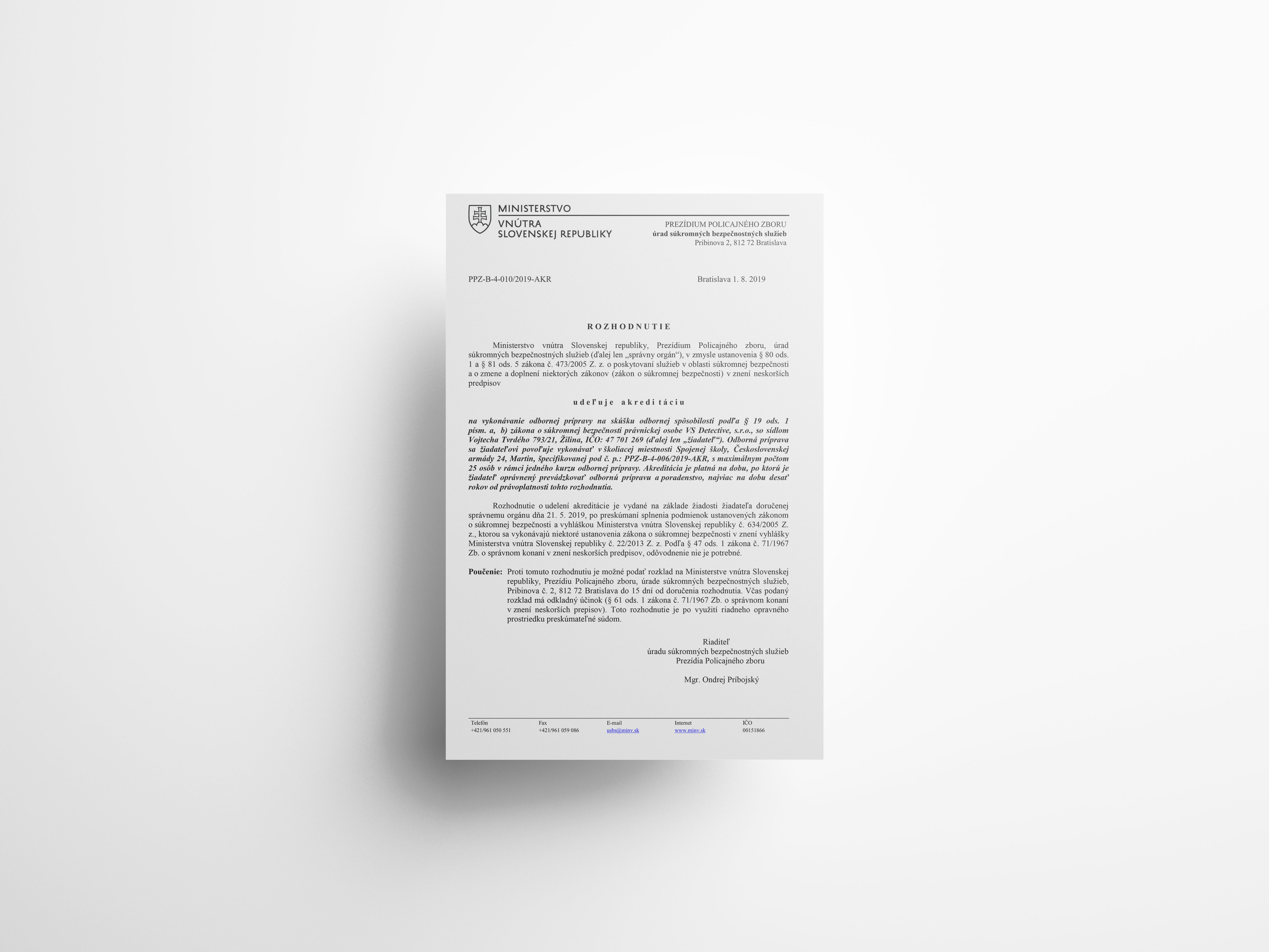 Sme bezpečnostná služba zameraná na poskytovanie strážnej služby a detektívnych služieb. Naše služby zabezpečujeme prostredníctvom tímu profesionálov, ktorí majú dlhoročné skúsenosti. K riešeniu situácií pristupujeme individuálne, hlavnou zásadou celého pracovného tímu je diskrétnosť.