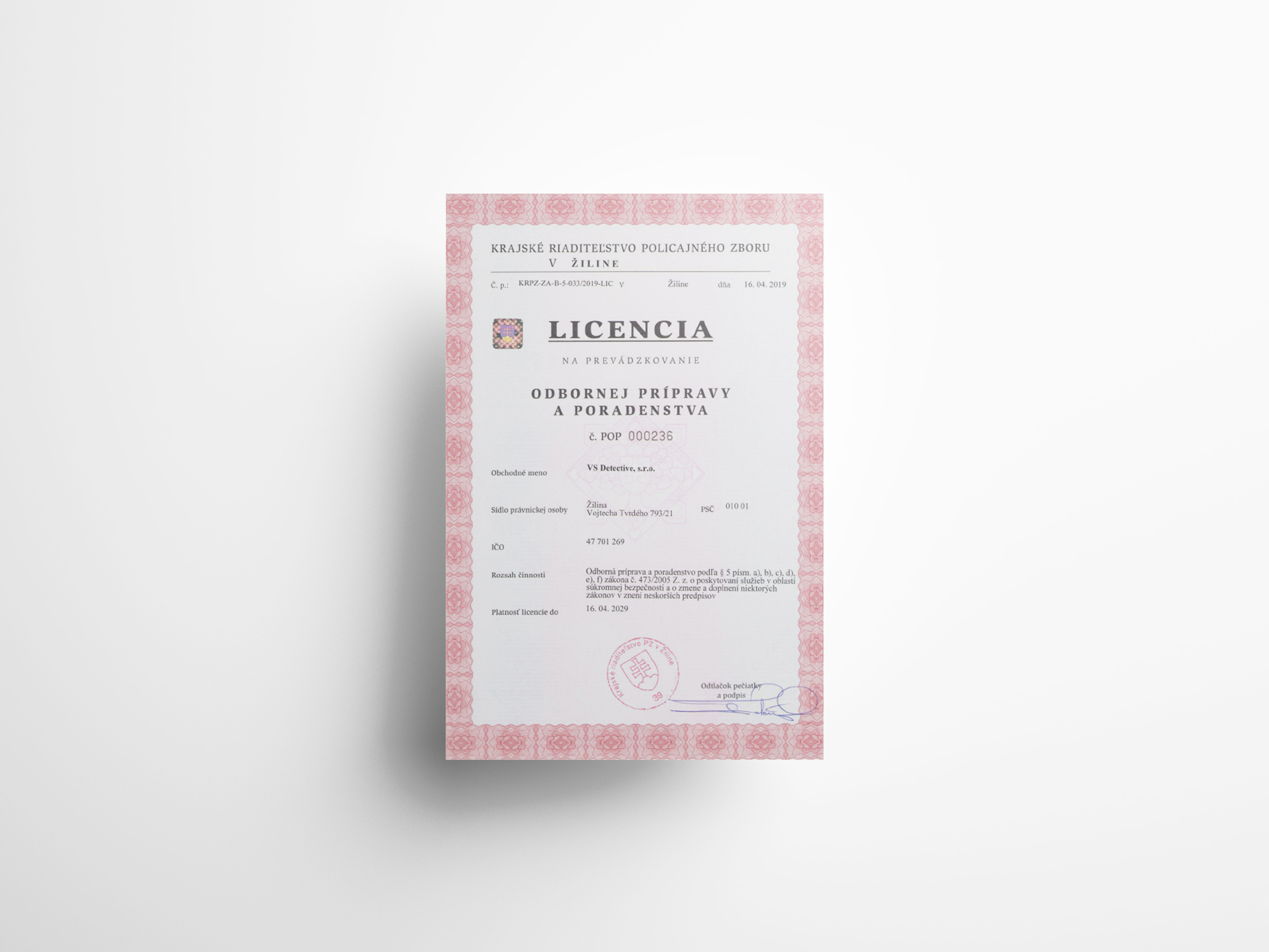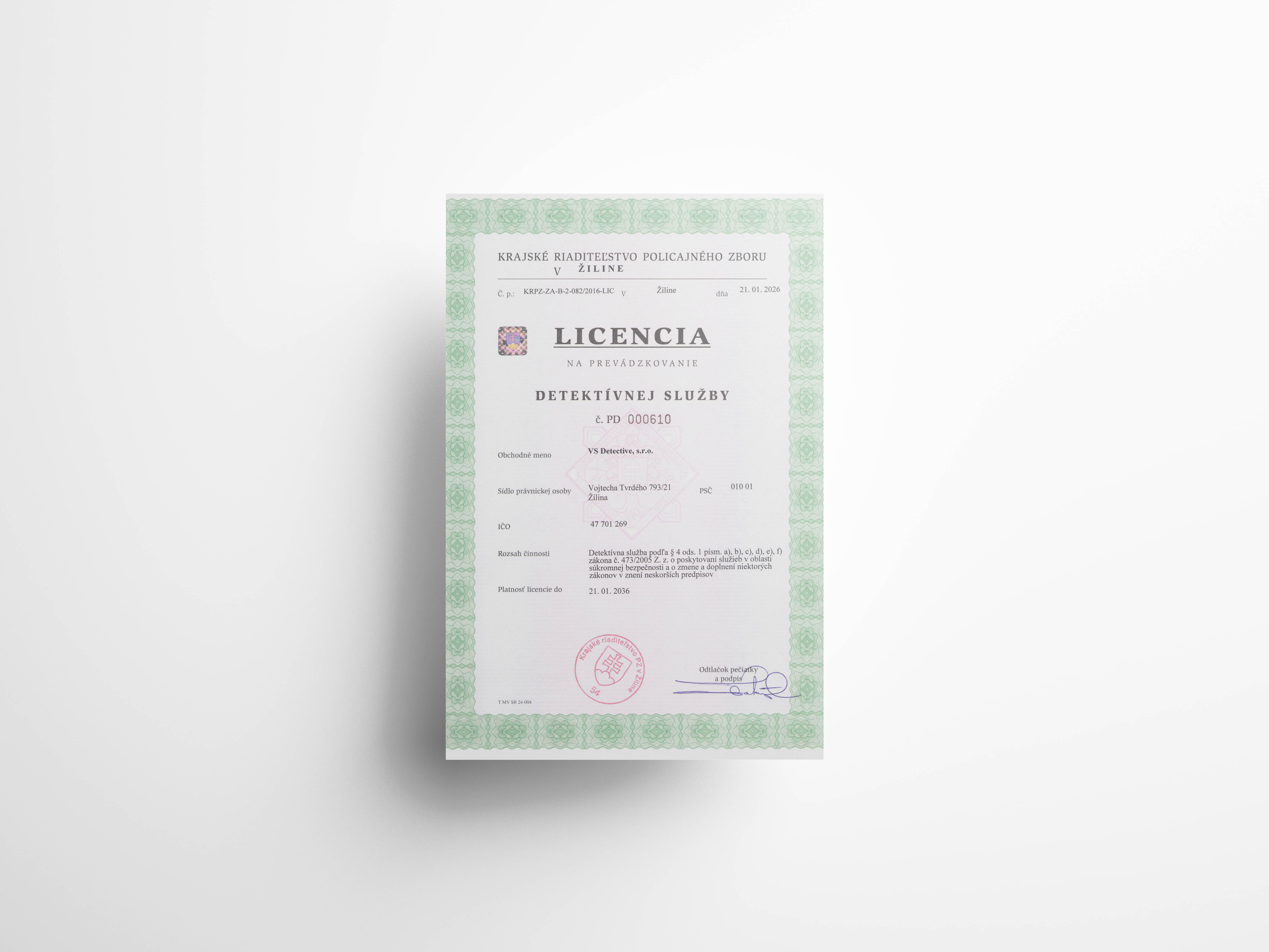 Detektívna služba je poskytovaná v zmysle § 4 Zákona č. 473/2005 Z. z. o poskytovaní služieb v oblasti súkromnej bezpečnosti a o zmene a doplnení niektorých zákonov (zákon o súkromnej bezpečnosti) na celom území SR a podľa charakteru prípadu aj mimo SR.